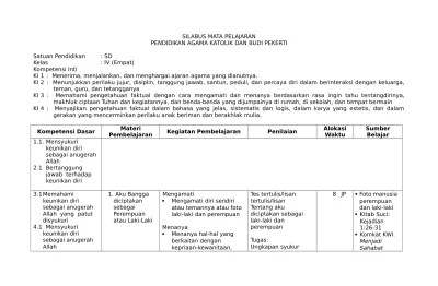 Berikut ini adalah contoh silabus agama katolik sd kelas 3 yang bisa. Jual rpp k13 revisi 2017 agama katolik kelas 5 sd kab sambas. Jual cd rpp k13 sd administrasi guru sd mapel agama kristen dan budi pekerti . Silabus akidah akhlak k13 kelas 2. Silabus mata pelajaran pendidikan agama katolik dan budi pekerti satuan .